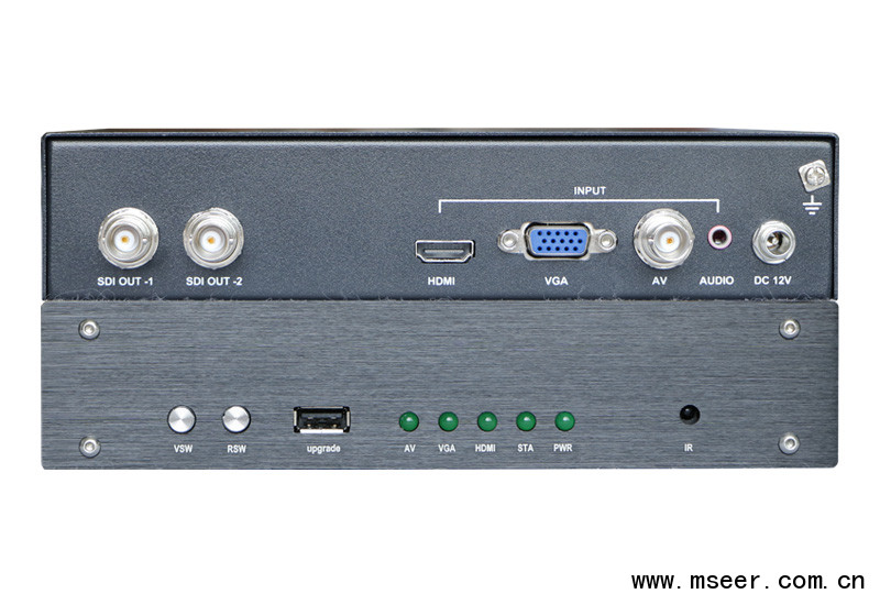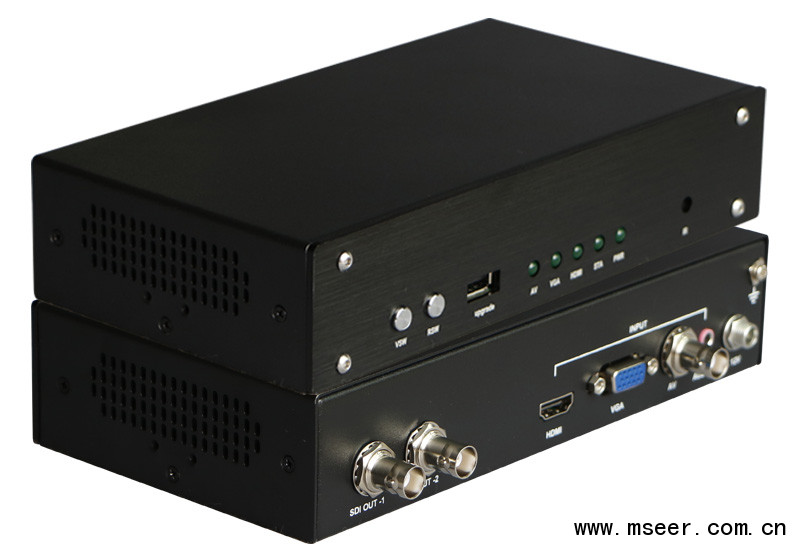 MHTS101是一款多功能轉(zhuǎn)換器。專用于將單路高清晰多媒體接口HDMI或VGA或模擬AV(CVBS)信號轉(zhuǎn)換為高清數(shù)字分量串行接口SDI信號的設(shè)備。該設(shè)備集成SDI發(fā)送器及HDMI解調(diào)器,可方便地將HDMI(VGA、CVBS)信號轉(zhuǎn)為SDI信號,同時會將HDMI所帶音頻信號分離轉(zhuǎn)換后嵌入到SDI信號中,或?qū)GA,AV(CVBS)外置音頻嵌入到SDI信號中,以實現(xiàn)聲音及圖像同步傳輸。用戶可以強制指定SDI輸出格式,以適應(yīng)不同應(yīng)用環(huán)境。產(chǎn)品主要用于高清視頻信號遠(yuǎn)距離傳輸,安防監(jiān)控視頻信號遠(yuǎn)距離傳輸、大型演出中高清視頻信號傳輸?shù)?/span>