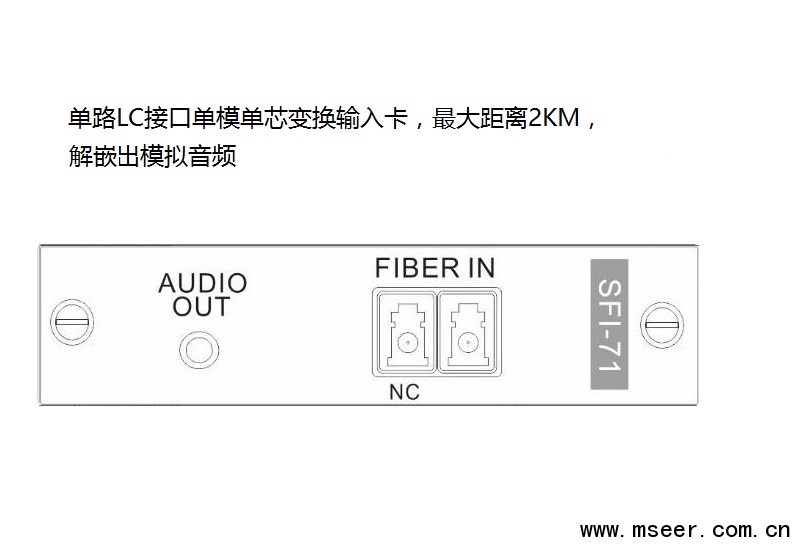 SFI-71 Fiber單通道變換輸入卡,配合SMD主機(jī)使用,采用獨(dú)立板卡設(shè)計(jì),每塊卡支持1路Fiber輸入,LC接口單模單芯,最大距離2KM(可選更遠(yuǎn)距離),解嵌出模擬音頻,支持最高1920x1080P60的數(shù)字高清圖像傳輸,