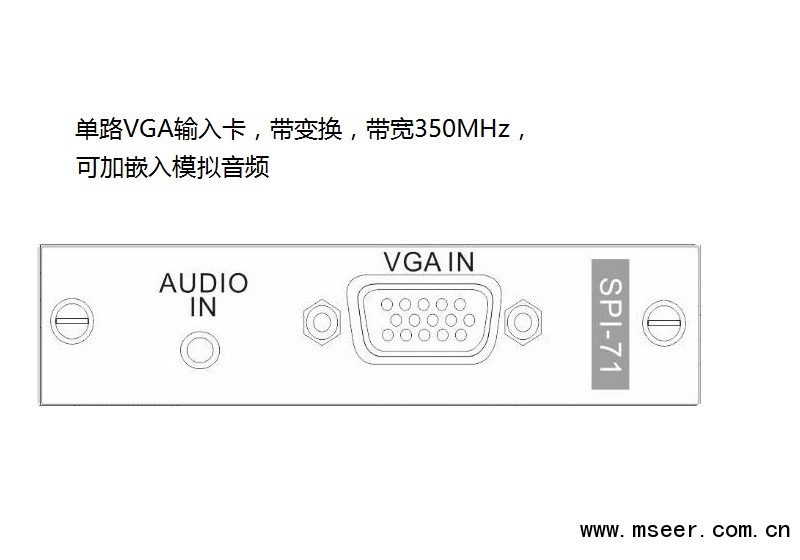 SRI-71 VGA單通道變換輸入卡,配合SMD主機使用,采用獨立板卡設(shè)計,每塊卡支持1路VGA輸入,可加嵌入模擬音頻,支持最高1920x1080P60的高清圖像傳輸.