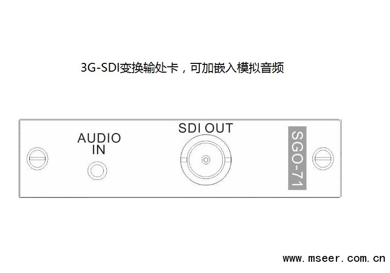 SGO-71 3G-SDI支持上下變換單通道輸出卡,配合SMD主機(jī)使用,采用獨(dú)立板卡設(shè)計(jì),每塊卡支持1路3G-SDI輸出,支持上下變換,兼容HD-SDI及SDI信號(hào),可加嵌入模擬音頻,支持最高1920x1080P60的數(shù)字高清圖像傳輸.