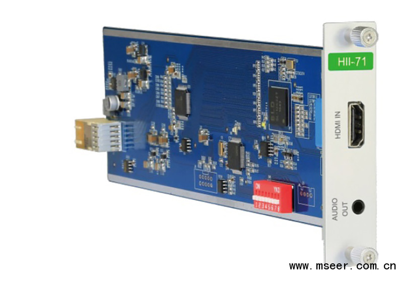 HII-71 HDMI單通道4K透傳輸入卡,配合HMD系列主機使用,采用獨立板卡設(shè)計,每塊卡支持1路HDMI輸入,帶均衡,輸入電纜最大長度7米(AwG24,3840X2160P30),解嵌出模擬音頻,支持最高3840×2160P30的數(shù)字高清圖像傳輸。