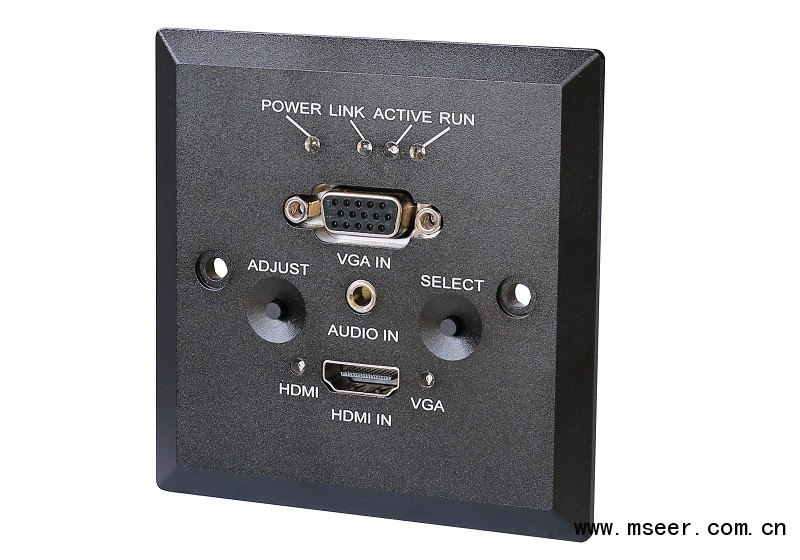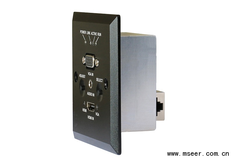 本系列產(chǎn)品包括標(biāo)準(zhǔn)86型接口器模塊(可以墻插和地插形式安裝)及桌面接口器(桌插)兩種類型。具備HDMI和VGA兩路輸入自動(dòng)選擇(HDMI優(yōu)先)之功能,并轉(zhuǎn)換成HDbaseT信號(hào)發(fā)送輸出,可通過單根CAT5電纜將HDMI或VGA的視頻、音頻信號(hào)中的任意1路最遠(yuǎn)發(fā)送至100m遠(yuǎn)的接收端。它可將輸入的模擬視頻及音頻信號(hào)數(shù)字化,實(shí)現(xiàn)數(shù)字高清信號(hào)的遠(yuǎn)距離無損傳輸,采用運(yùn)端PoL供電技術(shù)、方便安裝布線。