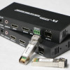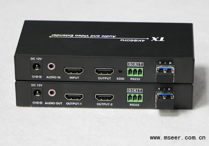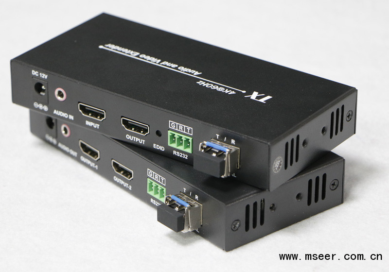 此光纖延長器是用于延長傳輸HDMI音視頻信號的設(shè)備,通常在HDMI線極限長度無法滿足傳輸距離的情況使用。本產(chǎn)品是通過萬兆光纖將最高分辨率為3840*2160@60Hz的HDMI高清音視頻信號無壓縮傳輸標(biāo)配10KM,本產(chǎn)品支持RS232串口數(shù)據(jù)透傳,獨(dú)立音頻傳輸,支持本地環(huán)出,在為用戶降低成本的同時保證信號的穩(wěn)定。延長器內(nèi)置學(xué)習(xí)EDID極大的提升了設(shè)備的兼容性。該設(shè)備具有傳輸距離遠(yuǎn)、使用成本低、安裝方便、兼容性好、是一種穩(wěn)定高效的傳輸方式,廣泛應(yīng)用于高清會議系統(tǒng),高清影視拍攝,高清教學(xué)系統(tǒng),高清數(shù)字廣告等的音視頻傳輸。